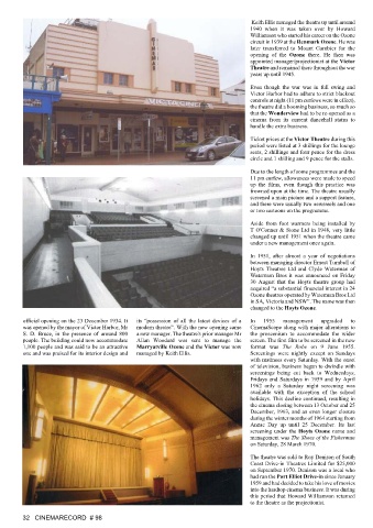 was opened by the mayor of Victor Harbor, Mr modern theatre”. With the new opening came CinemaScope along with major alterations to